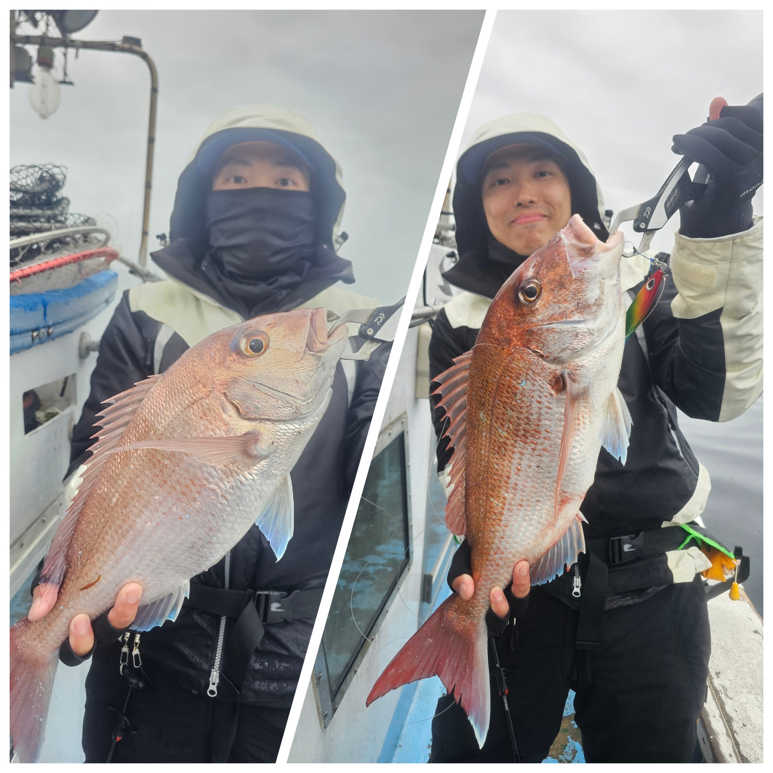4月23日タイラバ&SLJ便 2026年4月23日 最終更新日時 : 2026年4月23日 shinya-masuda 雨の中強者達と真鯛を求めて行って来ました😆 さすが平日&雨の日😅全然船が居ないw プレッシャーが無いおかげかいっぱい釣れました😁 常に誰かの竿が曲がってる状態になりました✨ 真鯛のサイズは食べ頃サイズとなっていましたがいっぱい釣れるので、持って帰る分だけ釣って帰りに根魚で遊んで今日は早上がりさせて頂きました👍 まだまだ真鯛は続きそうですね😄 Follow me!